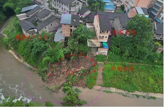 6月19日15时,垫江县曹回镇片区驻守地质工程师赵新、罗庆国、廖凯在巡查排查回龙社区3组时,发现村民廖家才等4户居民家屋后斜坡出现形变迹象,经详细调查后,立即上报县规划自然资源局和镇人民政府。接报后,镇政府立即组织人员在18时前紧急撤离人员4户11人。24日强降雨前,镇政府再次组织人员对该点进行雨前排查,未有人员回迁现象。25日14时30分,该斜坡出现大面积滑塌,滑坡体体积约800立方米,造成2间房屋垮塌,下方场镇排污管道断毁,直接经济损失约30万元。由于发现及时、处置到位,无人员伤亡。