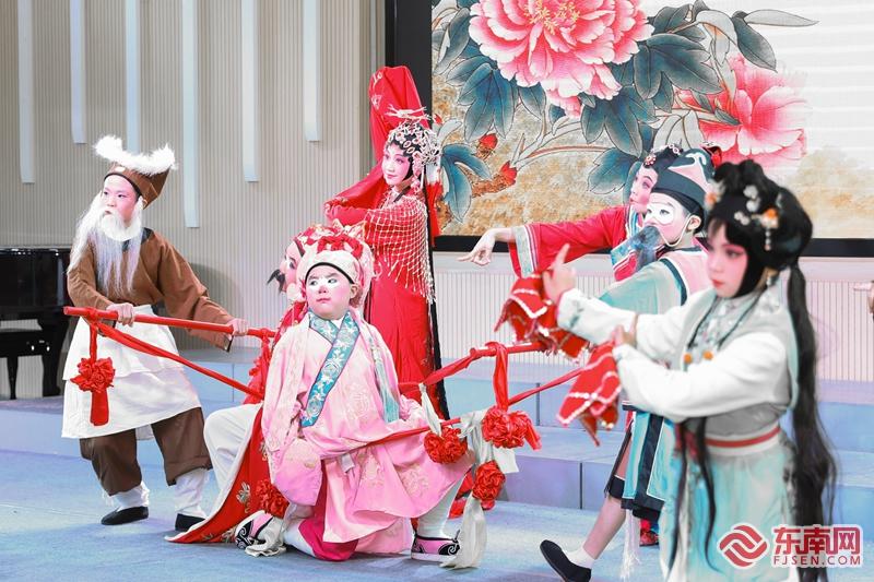来自泉州市新隅小学的陈诗豪与同学们带来了高甲戏表演《闹花轿》,作为公子丑的扮演者,诙谐俏皮的表演风格引得现场观众欢笑声连连。他从三年级起在学校少年宫学习高甲戏表演,因为觉得表演有意思,他越学越喜欢、越学越开心。