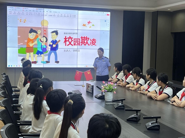 徐晓洁结合小学生的年龄特点和认知水平,通过真实案例,深入浅出地讲解了校园欺凌的定义、表现形式和危害。她强调,遇到校园欺凌时,要及时向老师和家长求助,忍受。在讲解防性侵内容时,她用通俗易懂的语言引导学生认识身体隐私部位,教会学生辨别性侵害危险信号,遇到危险时要勇敢说“不”,大声呼救,并迅速逃离现场,第一时间报警或向周围的人求助,及时告知信任的人。